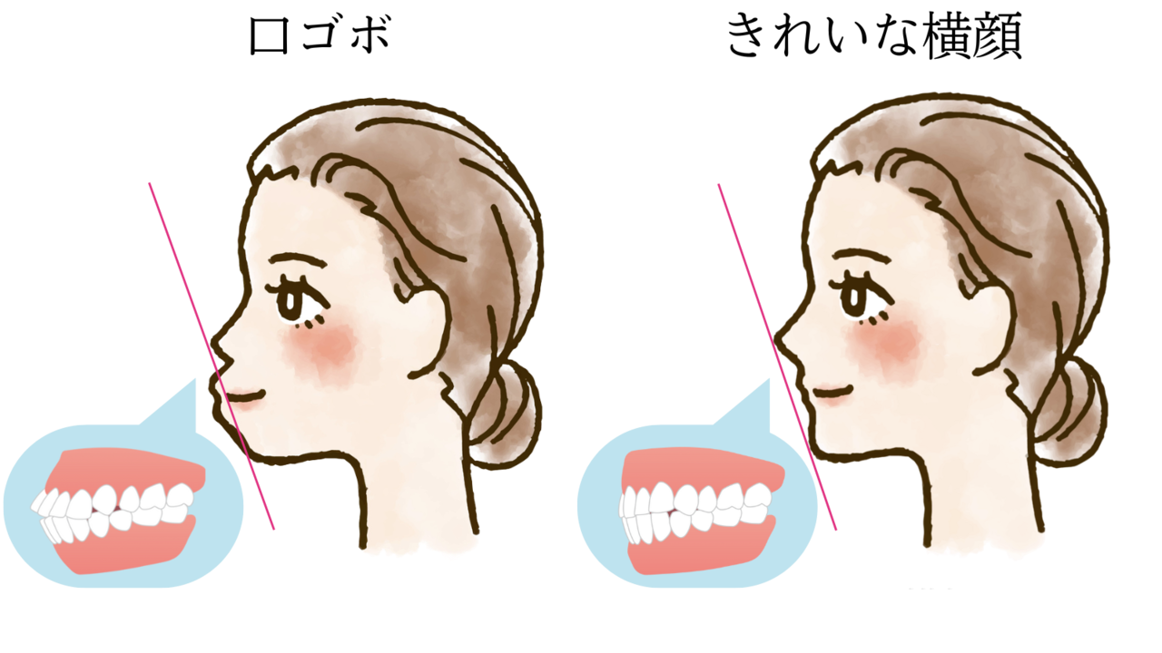 口ゴボとは唇を閉じたときに横から見ると、口元が突き出し、鼻と同じくらいに盛り上がっている状態。