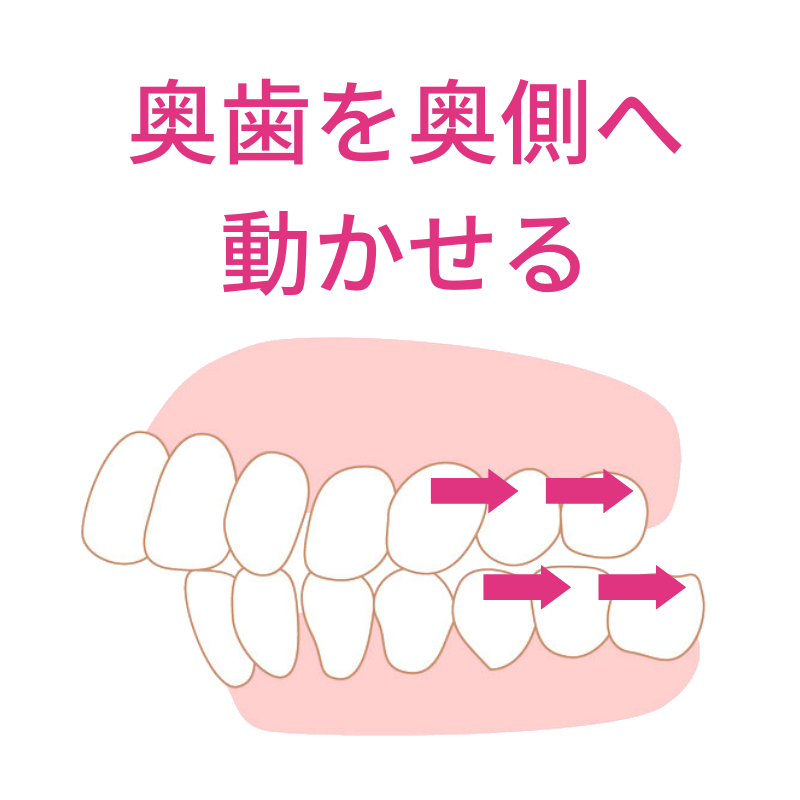 その点マウスピース矯正なら、奥歯を削ることなく、奥歯を押し込んで(圧下)、開咬を治療することができるのです。
