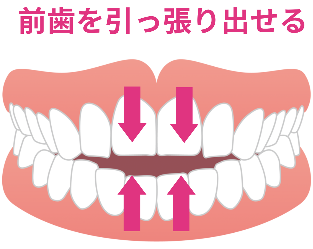 まず格安矯正は、この「前歯を引っ張り出す」挺出が行えません。
