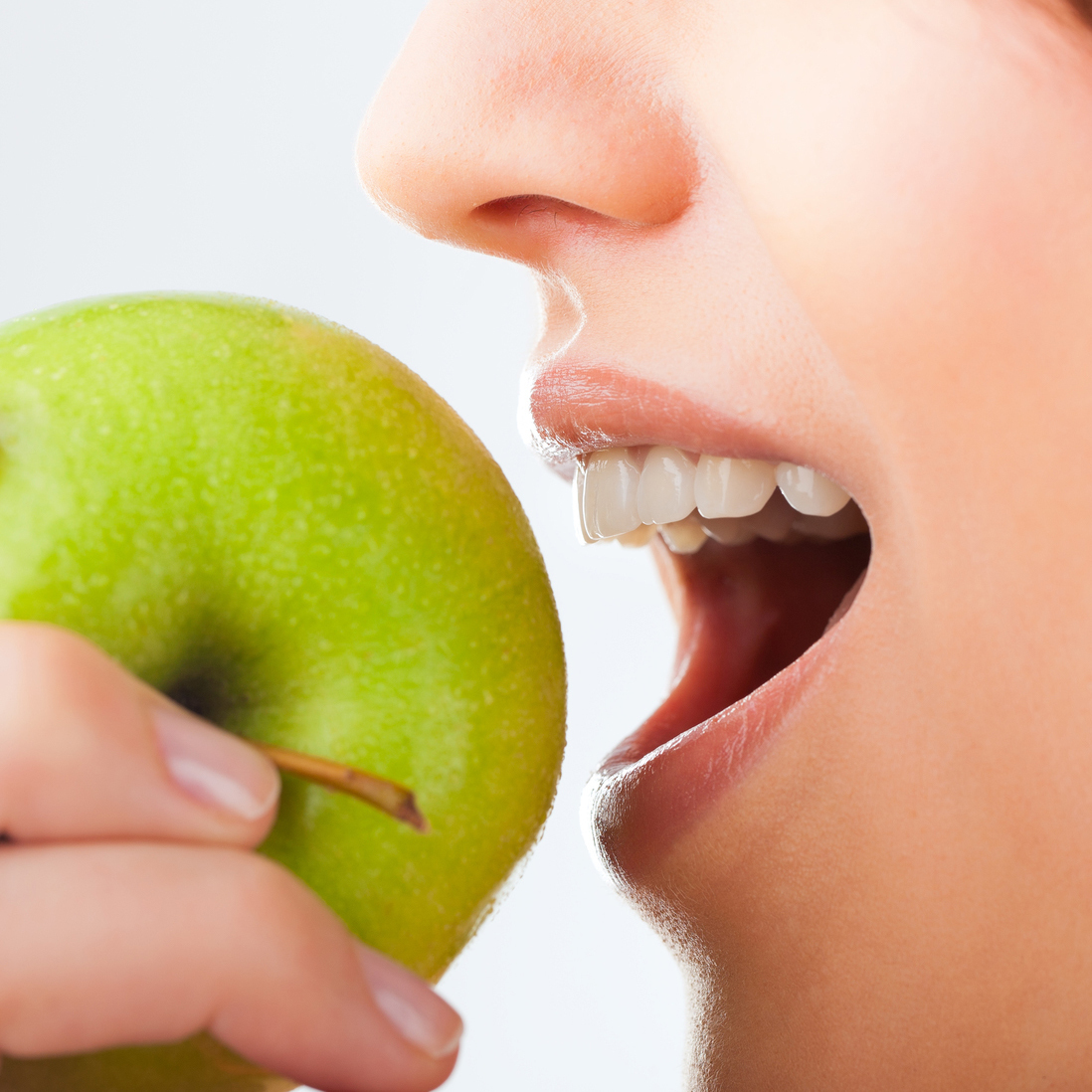開咬だと、ラーメンのような麺類を前歯で噛みきれない、あるいはリンゴ等の硬い食べ物を前歯でかじれないという風に、食事に支障が出ます。