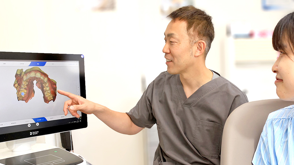 矯正用のマウスピースは滑らかな作りになっていますが、患者さまによっては違和感が大きいことがあります。そうした場合、装着時のちょっとしたコツをお教えし、少しでも快適に治療期間を過ごしていただけるよう努めています。