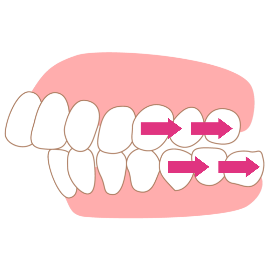 あごが小さくてスペースが足りない場合、先に生えてきた前歯と奥歯がスペースを使い切ってしまいます。